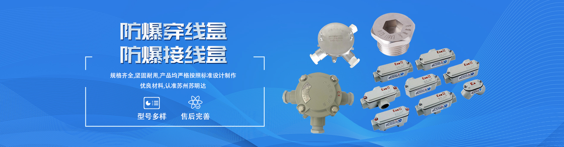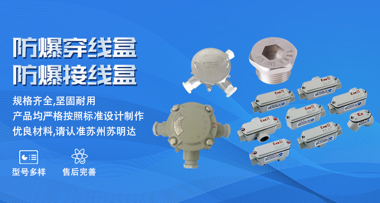 蘇州蘇明達(dá)防爆設(shè)備有限公司位于蘇州市相城區(qū)。是一家集研發(fā)、生產(chǎn)、銷售和服務(wù)于一體的科技型企業(yè)。公司專業(yè)生產(chǎn)防爆撓性連接管、防爆電纜夾緊密封接頭、防爆格蘭頭、防爆活接頭、防爆管接頭、防爆堵頭、鑄鋼防爆穿線盒、鑄鋼防爆隔離密封盒、鑄鋼防爆接線盒、防爆接線箱、防爆配電箱及防爆附件(電纜保護(hù)套筒、電機(jī)接頭、護(hù)口、格蘭頭護(hù)套、接地片、鎖緊螺母、U型管夾、安裝管夾、壓緊螺母、穿板接頭、吸盤、燈桿類等)。